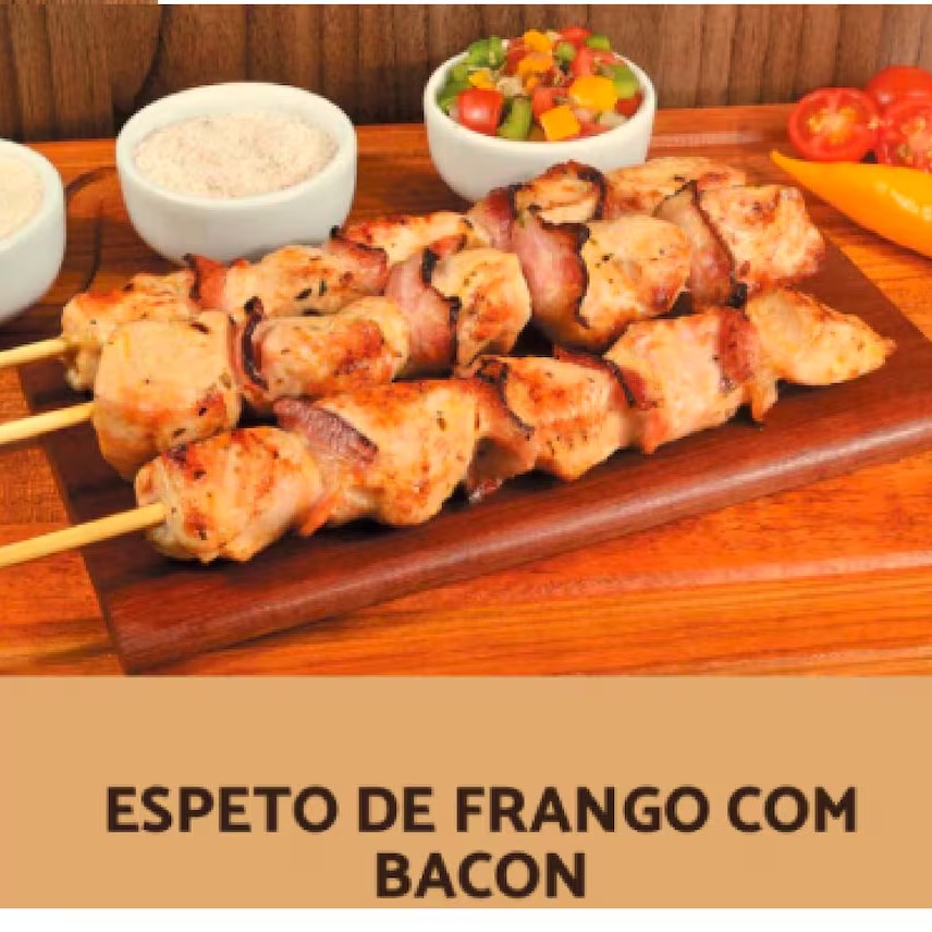 Pacote 600g Espetinho Cru (frango Com Bacon)