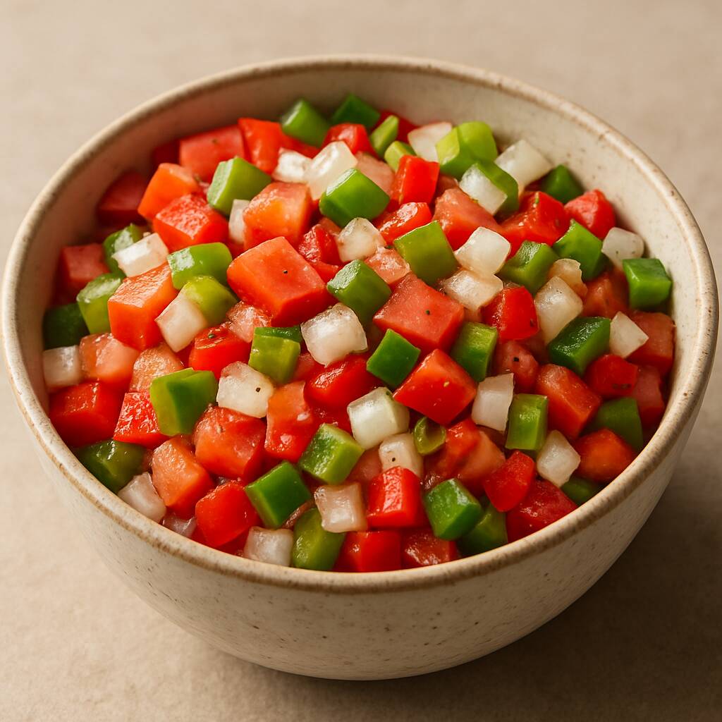 Clássico acompanhamento brasileiro feito com tomate, cebola e pimentão frescos, temperados com azeite, vinagre, sal e um toque especial de ervas. Refrescante e saboroso, é ideal para realçar o sabor dos seus pratos, churrascos ou lanches favoritos.