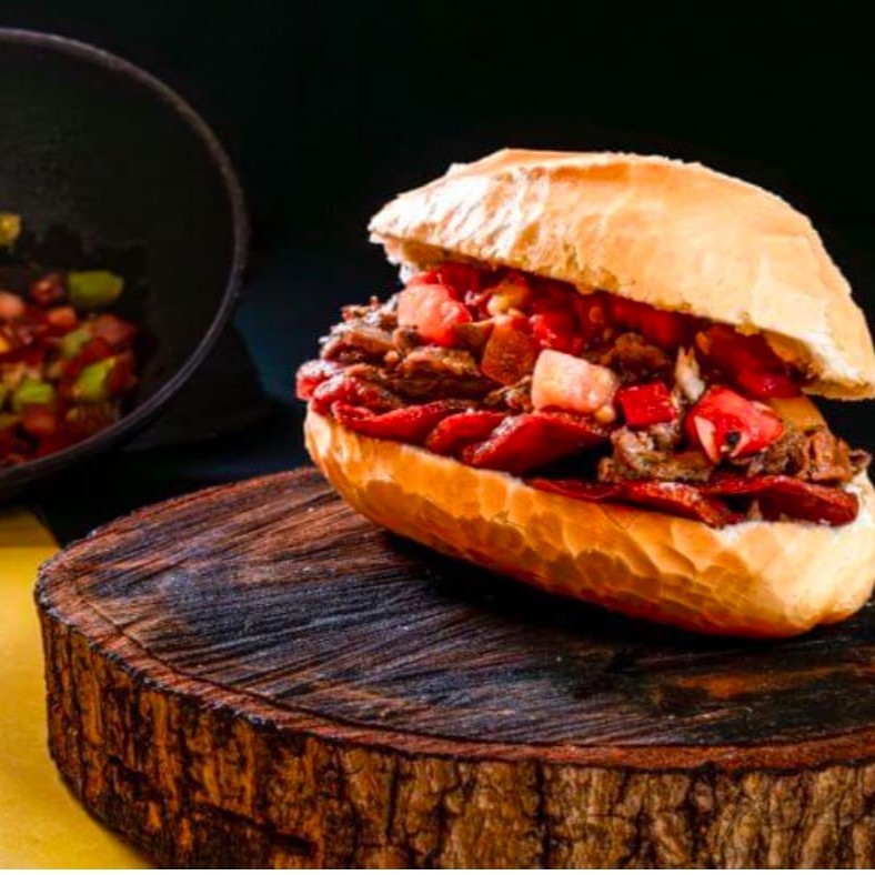 Pão francês, 200g de fraldinha grelhada ao fogo acompanha molho da casa, vinagrete e queijo derretido por cima da carne.!