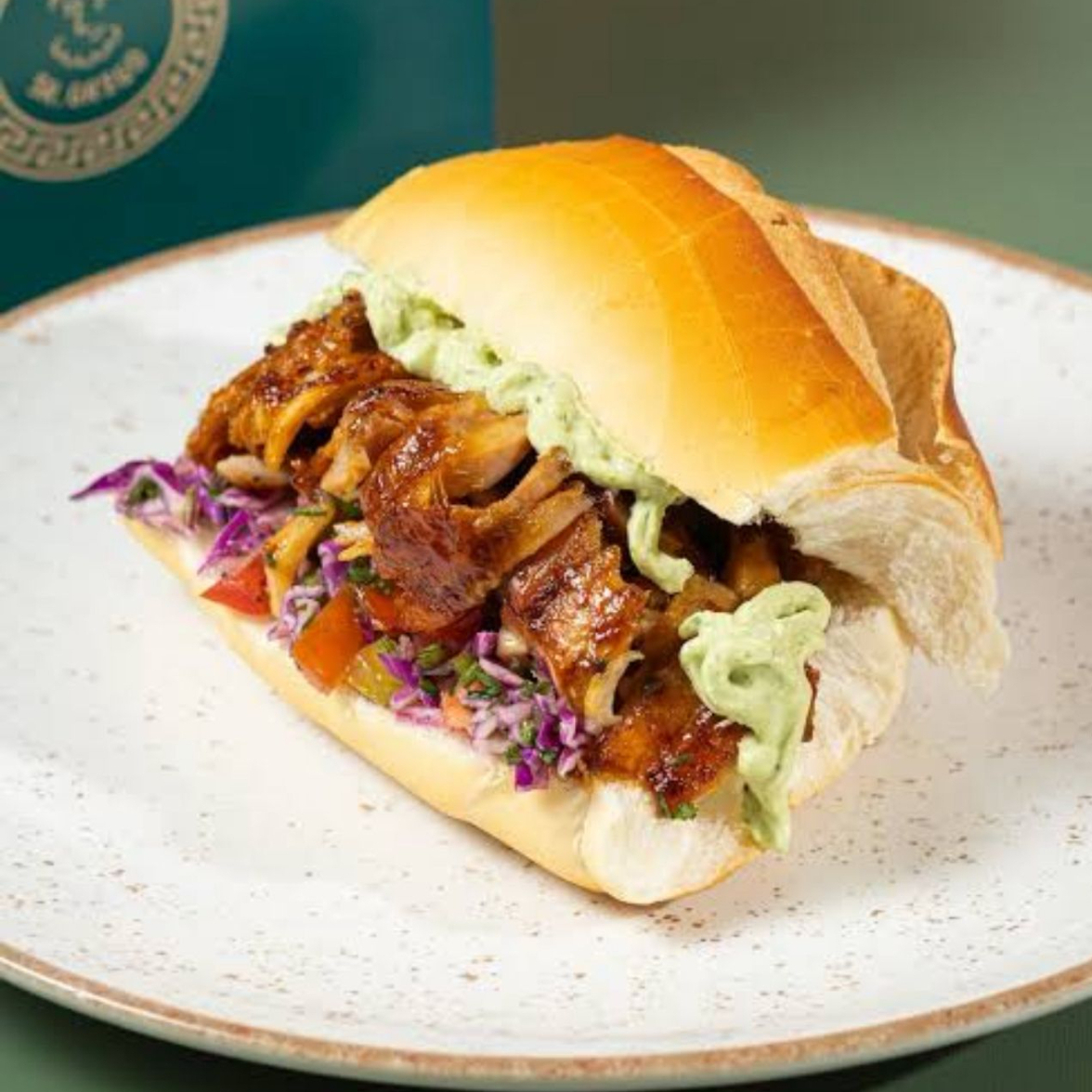pão francês, 180g de frango grelhado ao forno cortada em fatias suculentas e crocantes, acompanha molho de alho e o nosso vinagrete caseiro esse e o nosso churrasco grego de frango.