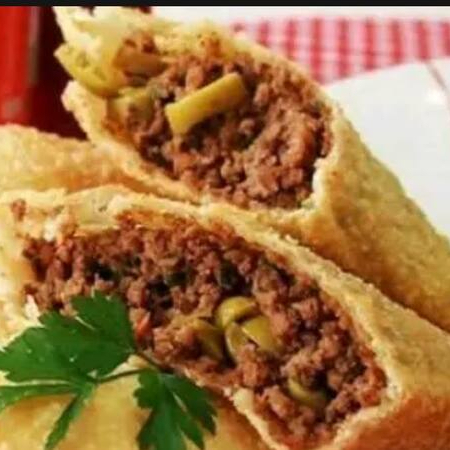 Massa de pastel, 300g de miolo de acém, presunto, queijo, ovo, azeitona e Catupiry