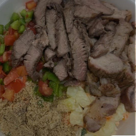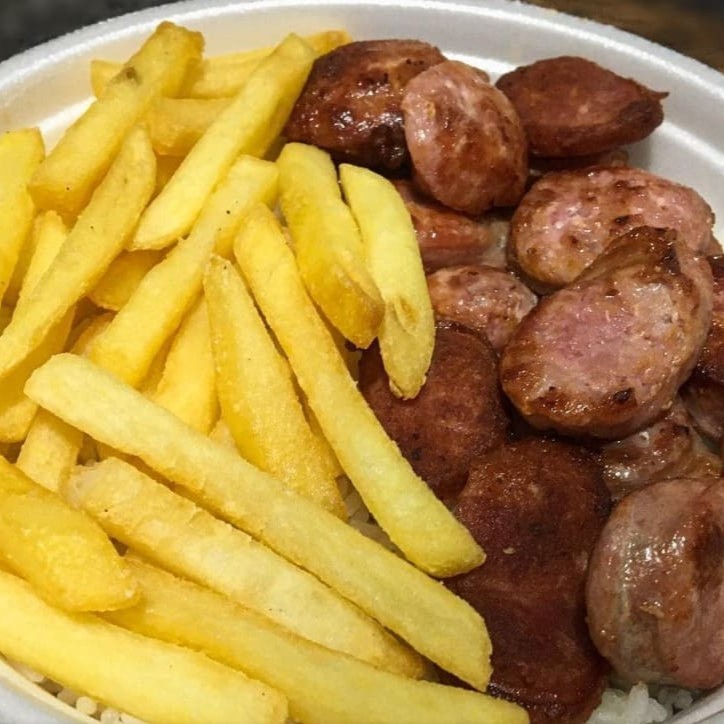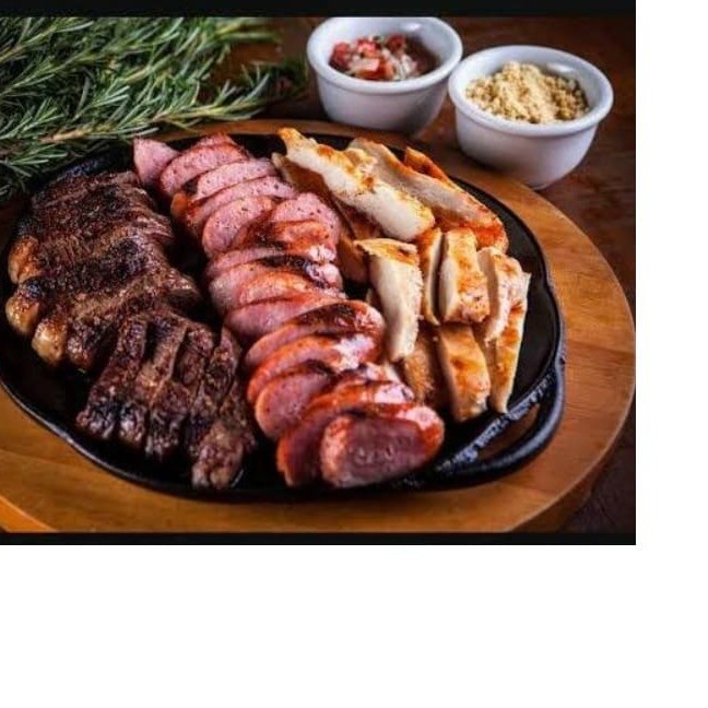 Uma marmita completa com o melhor do churrasco! Acompanha frango grelhado, linguiça toscana suculenta e contra filé assado na brasa, tudo no ponto certo e cheio de sabor. Arroz, feijao, vinagrete e Farofa Vai junto farofa e vinagrete fresquinho pra completar o prato com aquele toque especial.