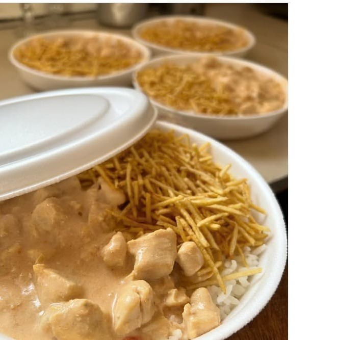 Nosso Strogonoff de Frango é preparado com tiras macias de frango, refogadas no molho cremoso à base de creme de leite, ketchup e um toque especial de tempero caseiro. Acompanha uma porção generosa de arroz branco soltinho e batata palha crocante, que dá aquele contraste perfeito de textura e sabor. Acompanha Bebida Acompanha Uma refeição completa, deliciosa e feita com muito carinho — perfeita