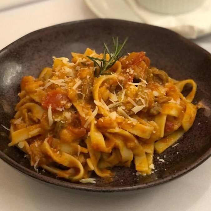 Espaguete Trufado Com Medalhão De Mignon Ao Molho Marchand Vin