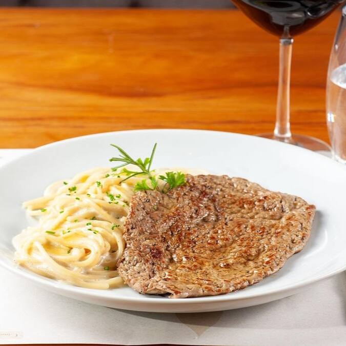 Espaguete Três Queijos Com Paillard De Mignon