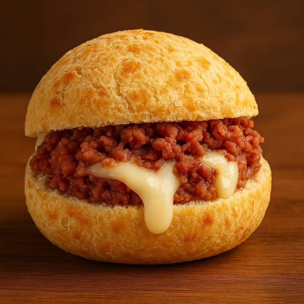 Pão de queijo dourado, recheado com calabresa suculenta e mussarela derretida.