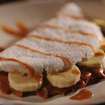 Tapioca de Doce de Leite com Banana Uma combinação clássica e cheia de sabor! Tapioca quentinha recheada com doce de leite cremoso e fatias de banana madura. Um lanche doce e aconchegante, ideal para quem não resiste a um sabor caseiro com toque especial.