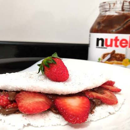 Tapioca de Nutella com Morango Irresistível e perfeita para adoçar o seu Dia! Tapioca recheada com cremosa Nutella e morangos frescos, combinando o sabor intenso do chocolate com o toque leve e frutado da fruta. Uma sobremesa ou lanche que derrete na boca e conquista no primeiro pedaço!