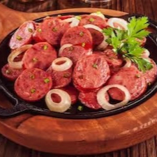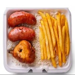 Acompanha arroz, feijão, 2 linguiças, 1 frango, salada e batata.