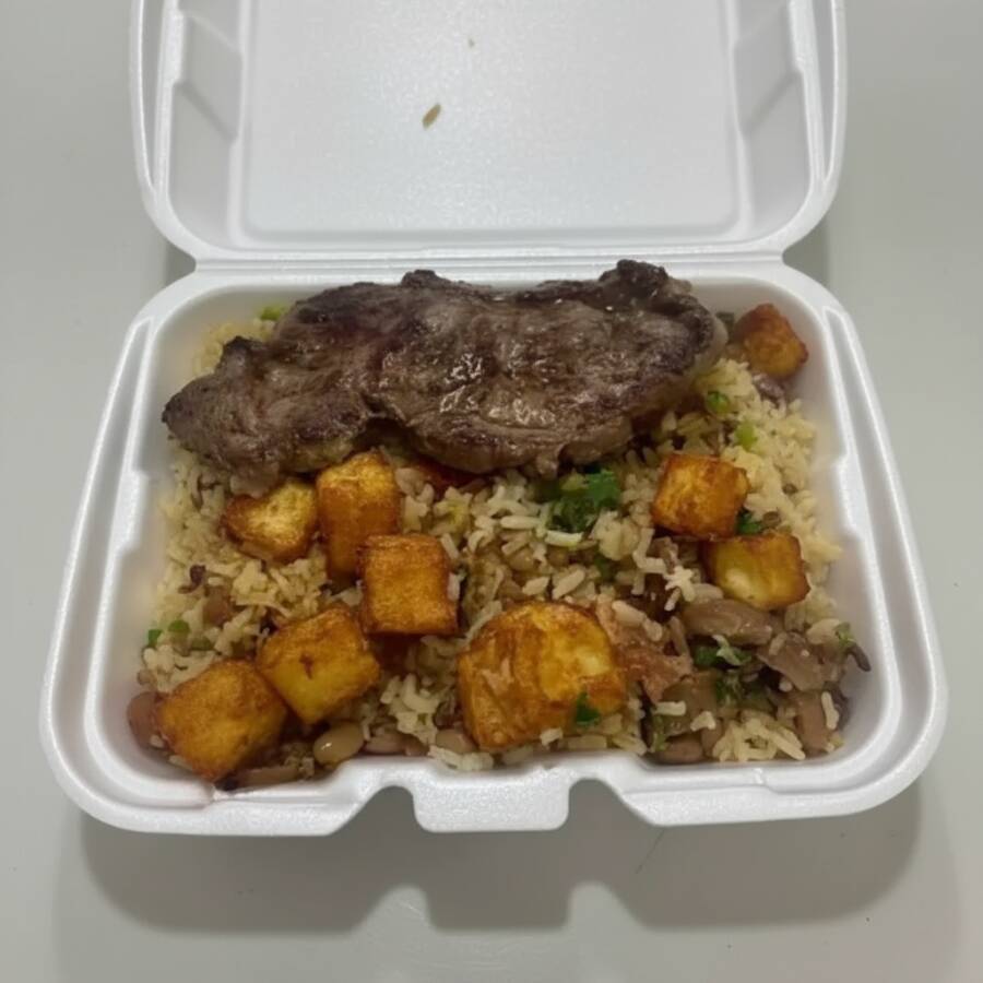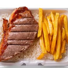 Arroz, feijão, cupim, linguiça, frango, fritas e refrigerante 200ml.