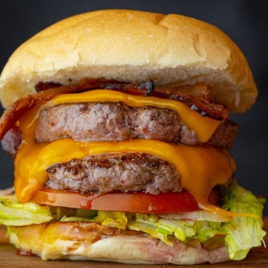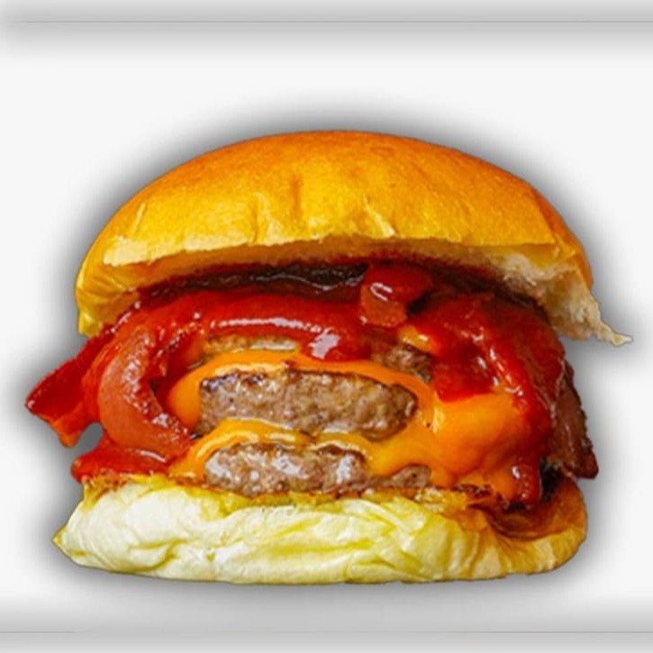 Pão tradicional, 2 burguers de costela angus black, queijo prato, alface, tomate, bacon e maionese especial. Acompanha Batata E Refri 200 Ml