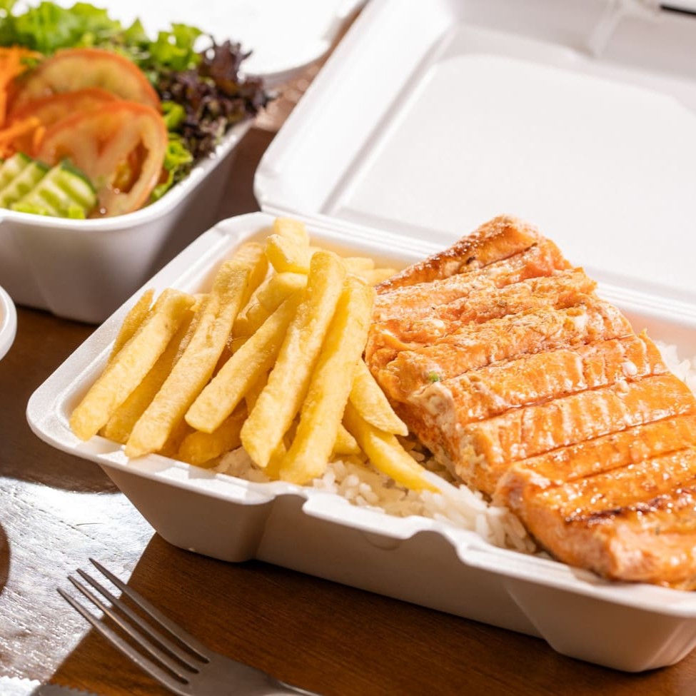 Arroz, feijão, fritas, farofa, salada e caçulinha de 200ml.