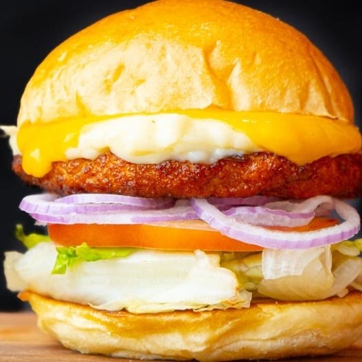 Pão brioche, frango empanado, queijo prato, Catupiry, alface americana, cebola roxa e tomate. Acompanha Batata,E Refri 200ml