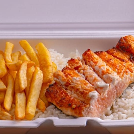 DELICIOSO SALMÃO ASSADO NA BRASA. ACOMPANHA: ARROZ, FEIJÃO, FRITAS, SALADA, FAROFA E REFRIGERANTE 200ML.