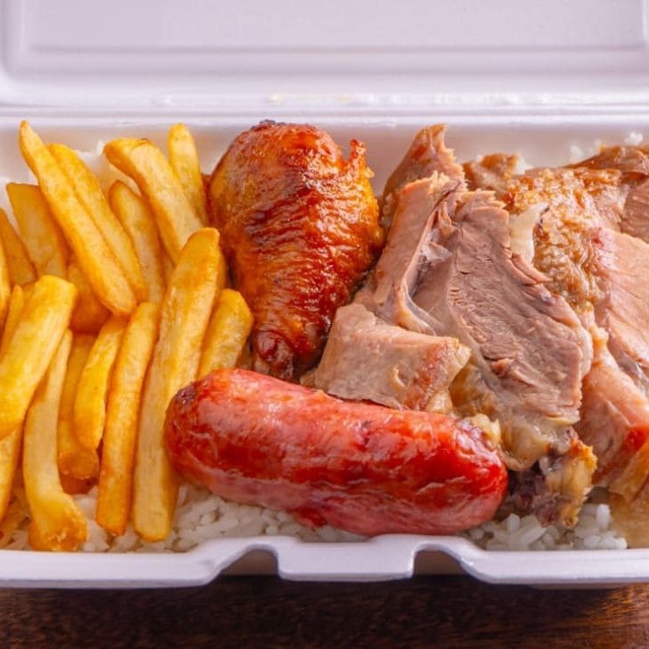 Arroz, feijão, cupim, linguiça, frango, batata frita e farofa. Acompanha refrigerante 200ml. Não substituímos itens.