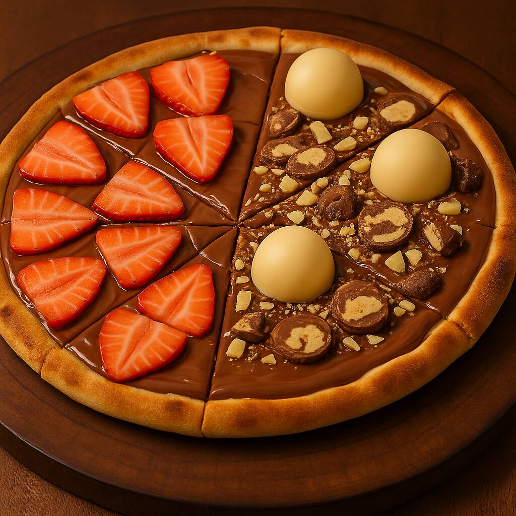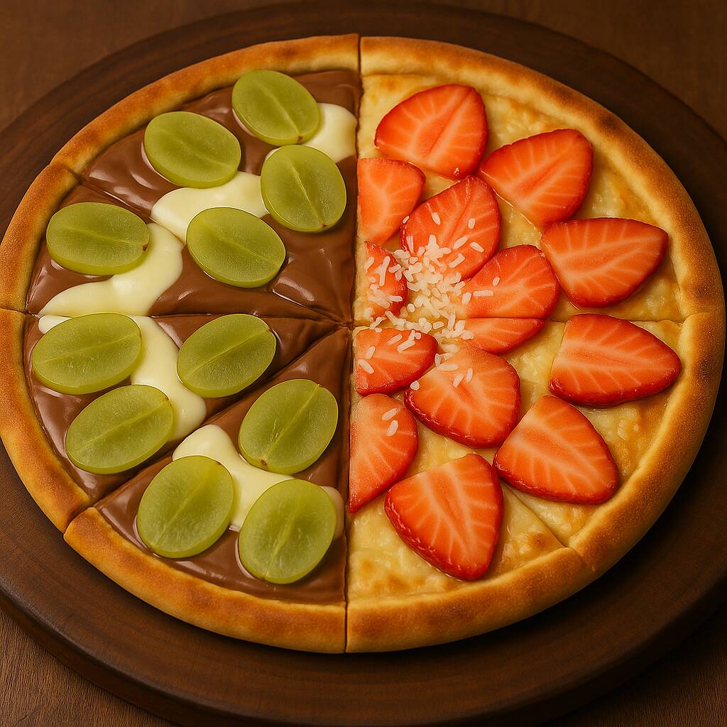 Deliciosa e Saborosa Pizza divida em duas metades perfeitas.