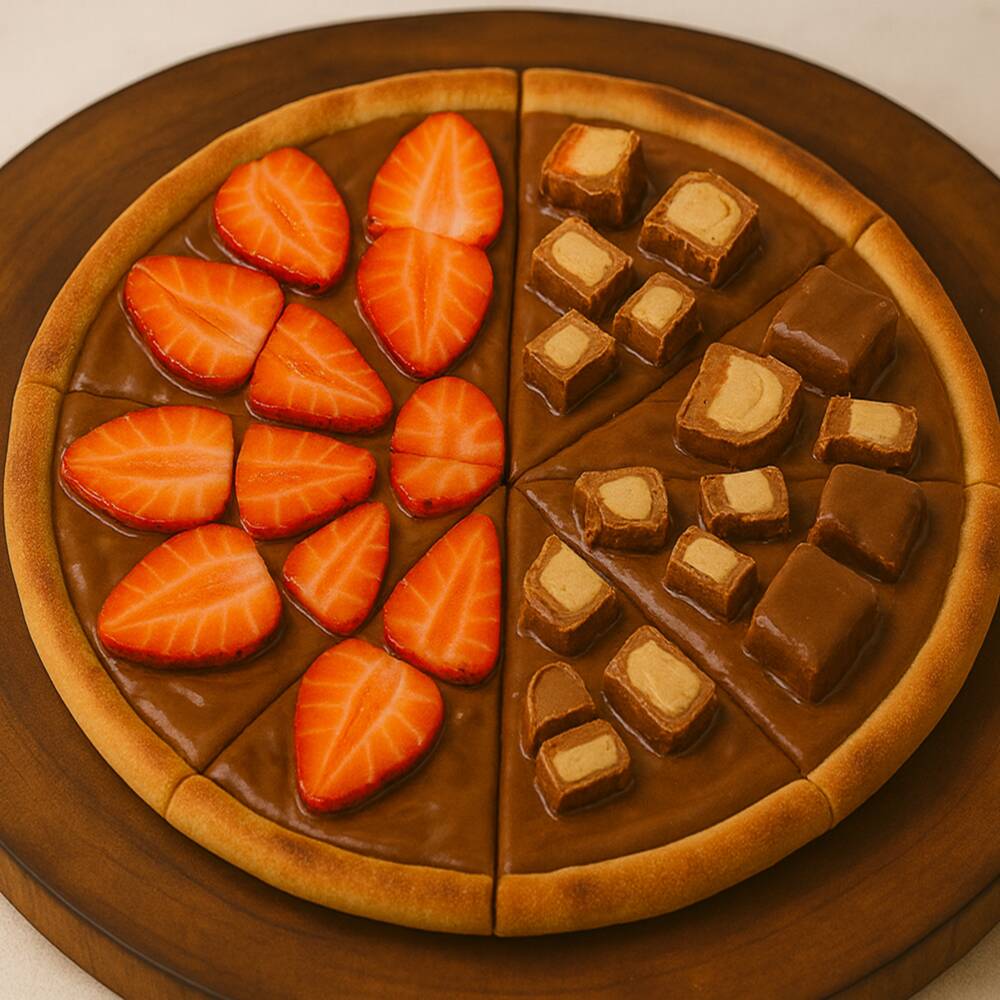 Deliciosa e saborosa pizza em duas metades perfeitas.