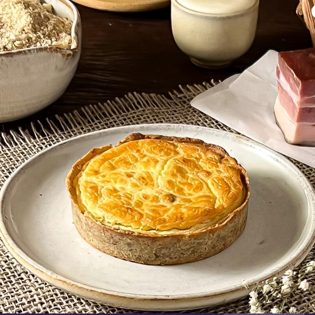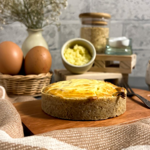Fofinha e saborosa quiche de muçarela com bacon em cubos, estritamente low carb. A pedida ideal para uma refeição leve.