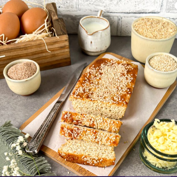 Pão caseiro low carb, delicioso e salgadinho, feito com fermentação natural.