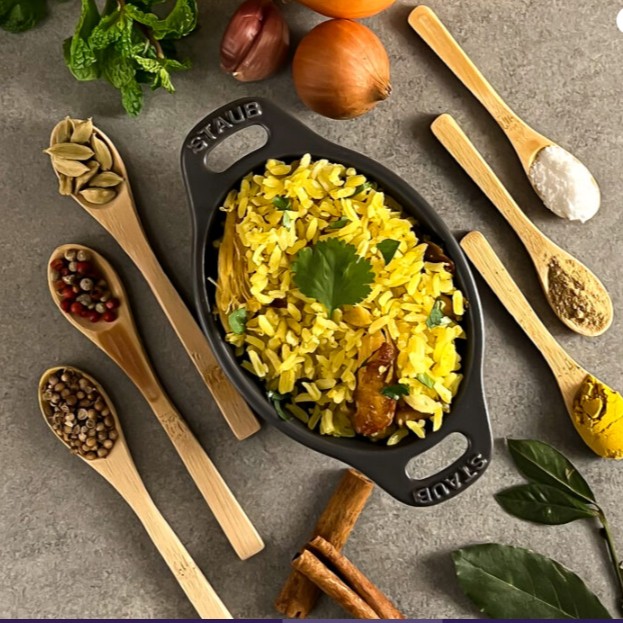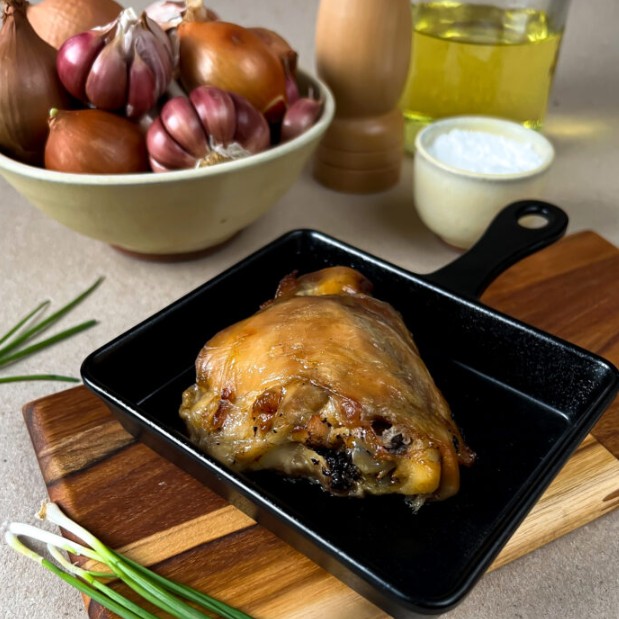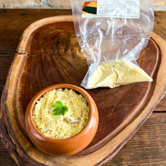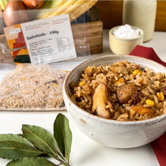 Arroz branco lentamente preparado na panela, com deliciosos pedaços de sobrecoxa de frango, cebola e os mais saborosos temperos, finalizado com milho verde cozido. O acompanhamento perfeito para você e sua família. Comida de verdade, da nossa cozinha para o conforto da sua casa.