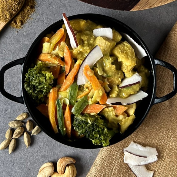 Chicken Curry Com Coco Fresco E Legumes No Leite De Coco