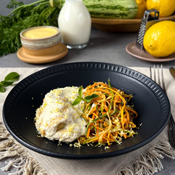 Peito De Frango Ao Creme De Limão Com Espaguete De Legumes