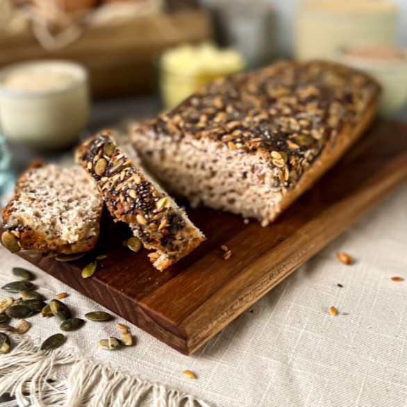 Nosso pão low carb com sementes de chia, linhaça, girassol e abóbora é uma perdição para quem tem bom gosto e quer uma alimentação saudável.
