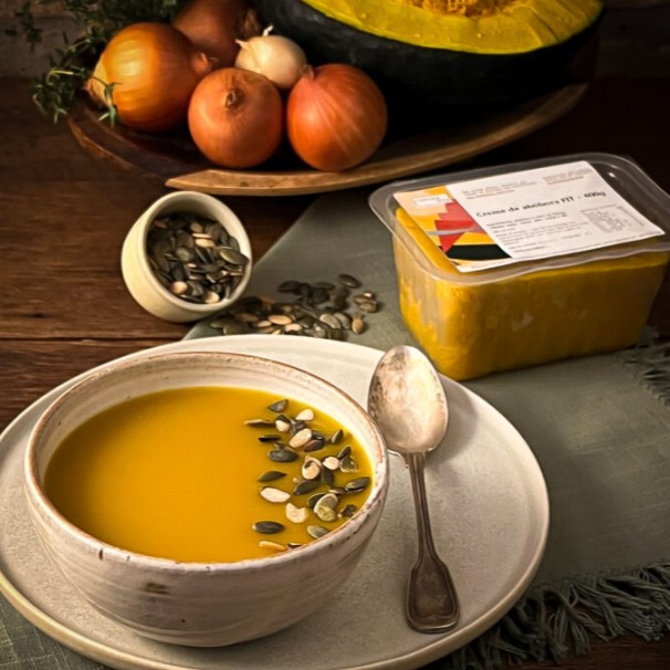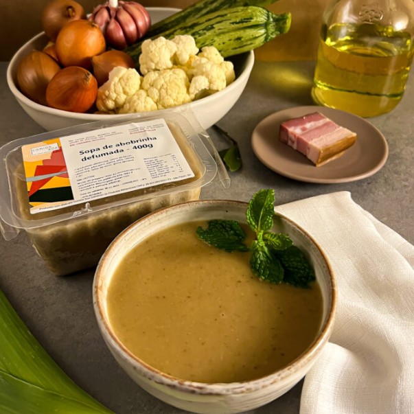 Saboroso creme de abóbora cabotiá com caldo de frango. Ótima opção para quem busca uma refeição low carb e low fat. O creme de abóbora FIT é produzido com ingredientes naturais, sem adição de temperos artificiais nem conservantes, além de ser super saudável. São menos de 200 calorias numa porção de 400g e apenas 40mg de sódio. O caldo de frango é produzido em nossa própria cozinha.