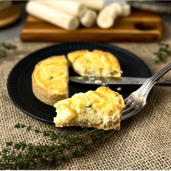 Fofinha e saborosa quiche feita a base de farinhas de amêndoa, amendoim, e linhaça, recheada com muçarela, requeijão e palmito pupunha em cubinhos, estritamente low carb. A pedida ideal para uma refeição leve.