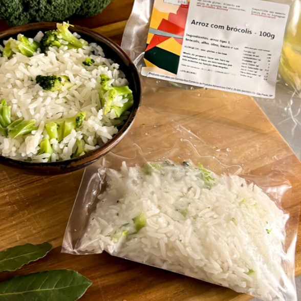 Soltinho e bem temperado arroz branco, acompanhado de tenros pedaços de brócolis ninja verdinho. Feito com ingredientes naturais, sem aditivos químicos nem conservantes. Comida de verdade ultracongelada, de fácil preparo. Bastam alguns minutos no microondas e sua refeição saudável e saborosa está pronta. Da nossa cozinha para o conforto da sua casa.