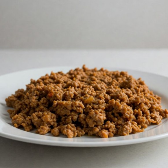 Carne bovina, moída e refogada com óleo, alho e sal.