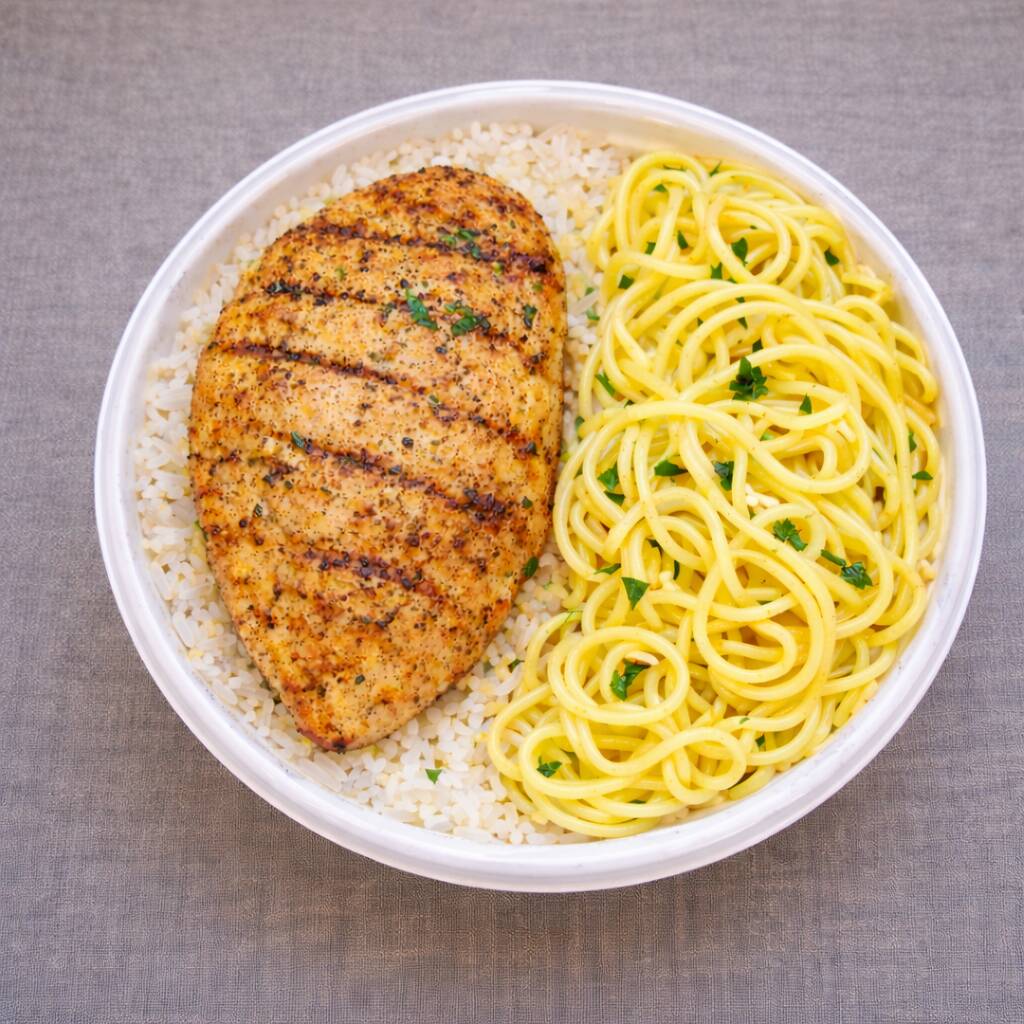 Frango Grelhado + Macarrão Alho E Oleo