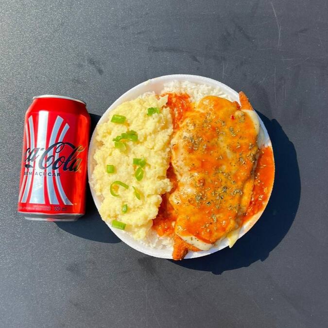 Frango Parmegiana & Purê + Coca Cola Zero 350ml + R$ 18,99 Leve Outra Marmitex