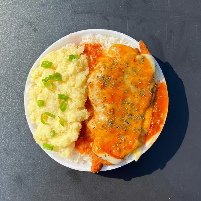 Frango Parmegiana & Purê + R$ 18,99 Leve Outra Marmitex
