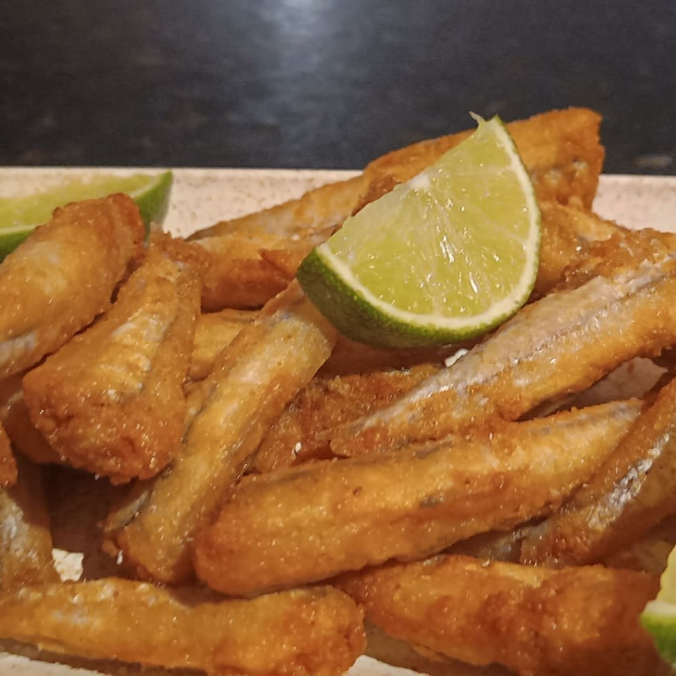 Peixe fritinho, de agua salgada limpo sem cabeça delicioso, ótimo acompanhamento para cerveja