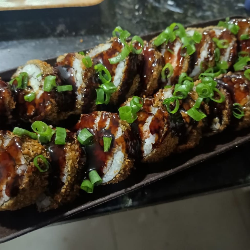 Sushi frito versão Filadélfia peixe tilápia