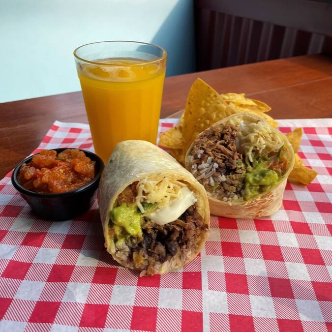 Escolha seu burrito favorito, combine com um molho irresistível para a porção pequena de nachos e finalize com uma bebida refrescante.