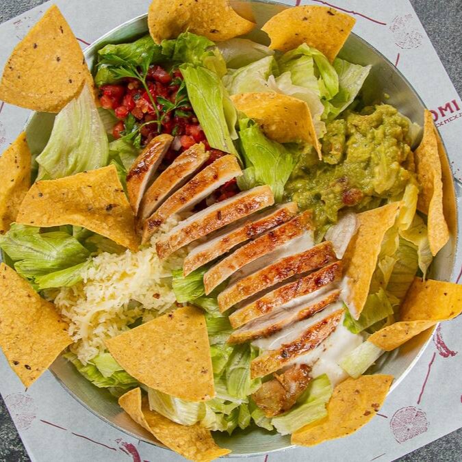 Salada leve com alface americana, guacamole, pico de gallo, sour cream, coentro fresquinho e chips crocantes de tortilla de milho.