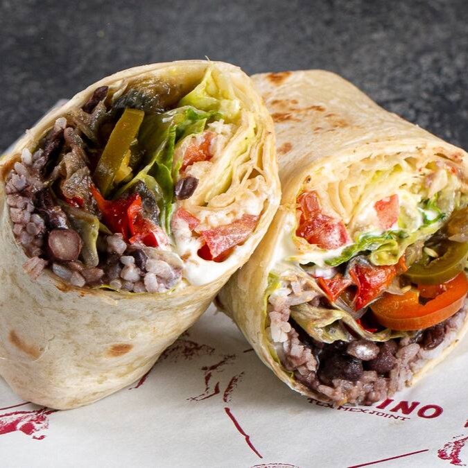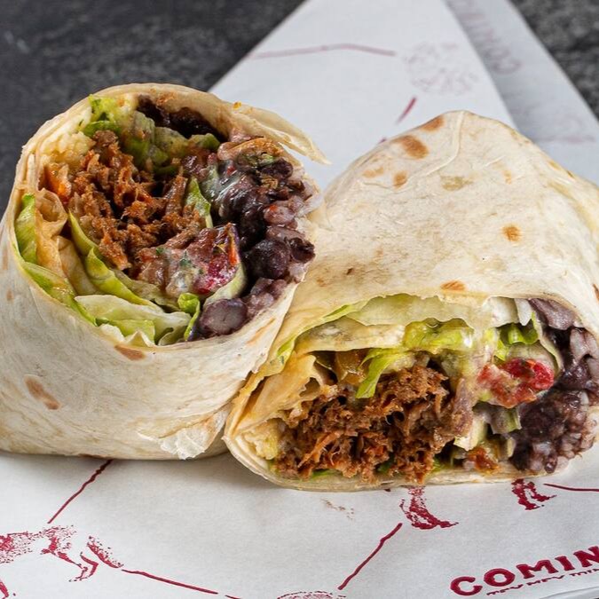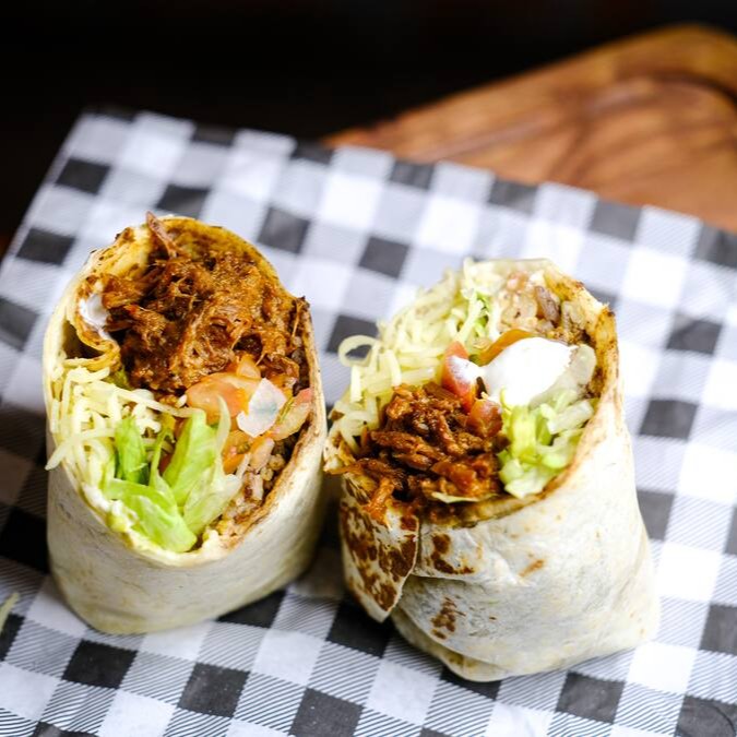 Tortilla de trigo recheada com guacamole, sour cream, pico de gallo, jalapeños, queijo, arroz, feijão e uma proteína a sua escolha.
