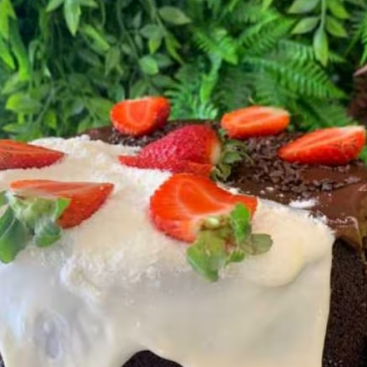Bolo Vulcao Ninho Com Muitos Morangos(serve 6 Pessoas)