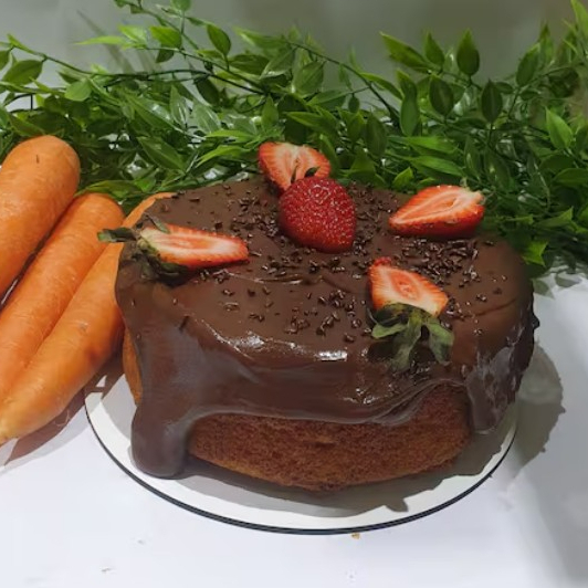 Bolo Vulcao De Cenoura Com Muitos Morangos(serve 6pessoas)
