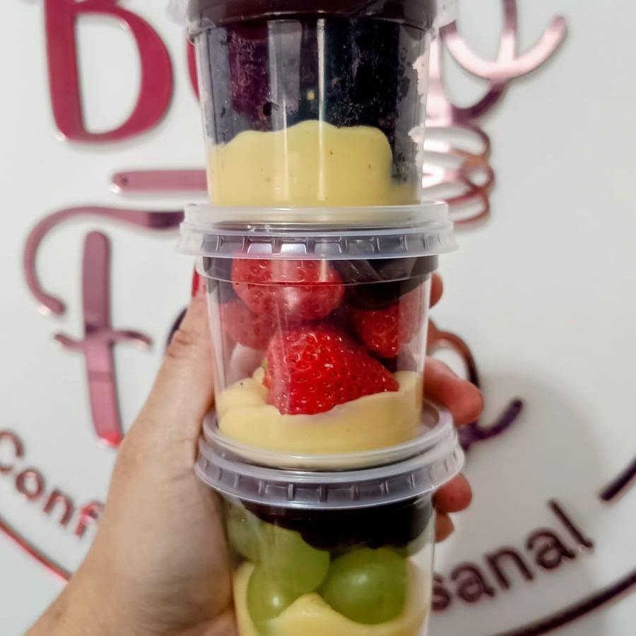 creme de chocolate, mousse de morango, bolo de chocolate. 250ml