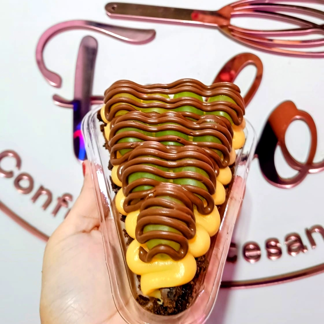 Brownie, creme de chocolate ao leite, amendoim, nutella e brigadeiro de ferrero
