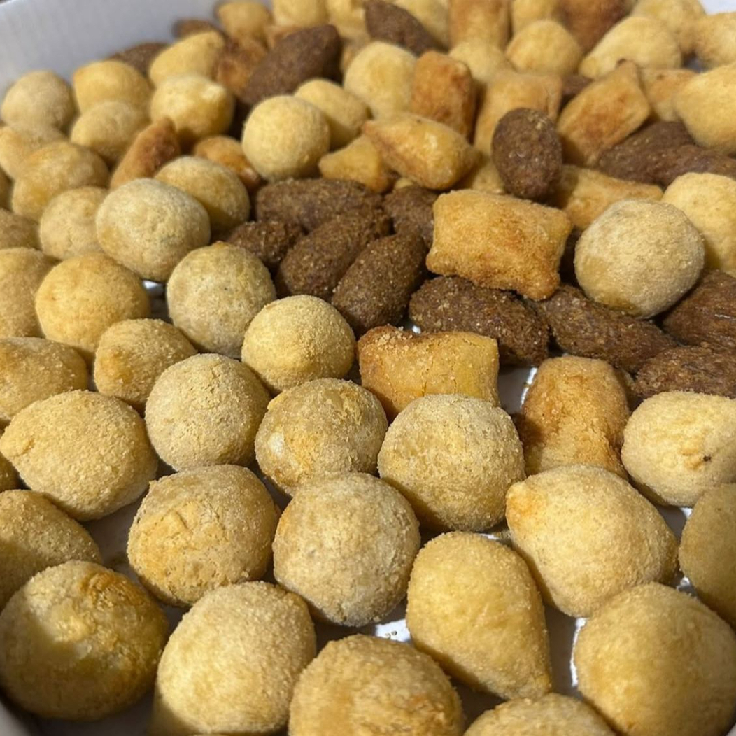 Uma generosa porção de 50 mini salgados assados, ideal para eventos ou reuniões. Estes salgados destacam-se pela massa macia e leve e por seus recheios saborosos e bem temperados. Uma opção mais leve, mas igualmente deliciosa, com textura suave e um delicioso aroma de forno.