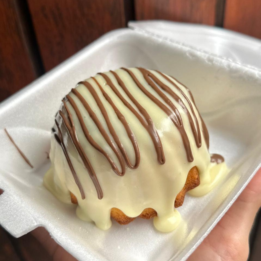 O Mini Bolo Vulcão é a versão individual e irresistível do bolo que transborda! Possui uma massa fofinha e úmida com um generoso furo central. Este furo é preenchido com uma cobertura cremosa e abundante que escorre delicadamente pelas laterais, criando o famoso "efeito vulcão". É a dose perfeita de maciez e cremosidade em uma única porção.