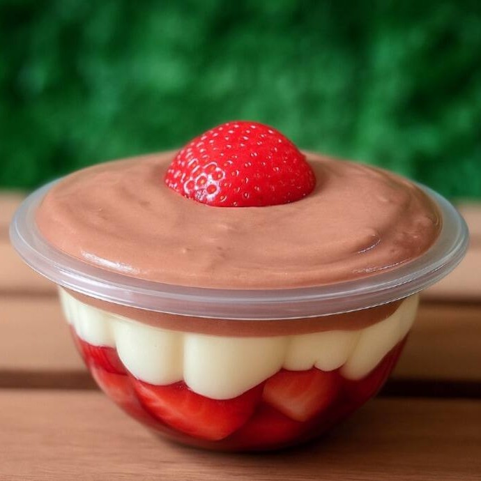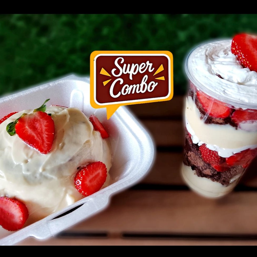 Pedaços de morangos , brigadeiro branco cremoso de Ninho , cobertura brigadeiro gourmet 150ml ( Atenção : Não Tiramos Ou Trocamos Ingredientes do produto! )