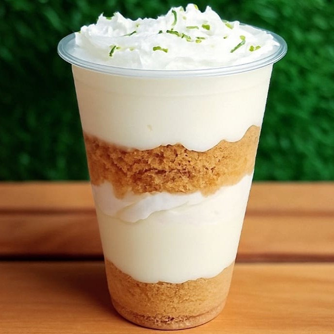 2 Camadas de farofa umida com bolacha maisena e manteiga, creme de limão, chantilly e finalizado com raspas de limão, delicioso! ( Atencao : Nao Tiramos Ou Trocamos Ingredientes Do Copo )