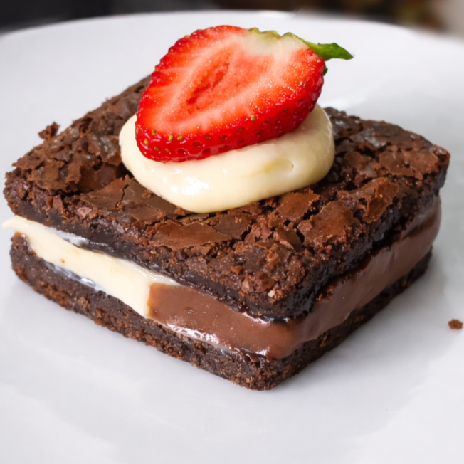 Brownie cremoso, recheio Ninho cremoso, brigadeiro, delicioso!