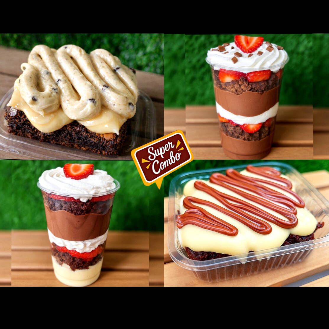 2 Camadas de brigadeiro cremoso de Ninho , pedaços de brownie, frutas e creme chantininho . ( Atencao : Nao Tiramos Ou Trocamos Ingredientes Do Copo )
