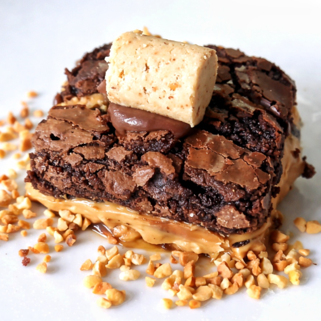 Brownie artesanal, creme de amendoim, brigadeiro gourmet e uma paçoca de cobertura, delicioso!